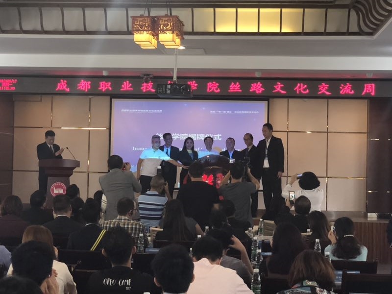 四川在线消息(记者 江芸涵)为积极响应国家“一带一路”倡议,推进我省职业教育对外开放,9月17日,首届“丝路文化交流周”活动在成都职业技术学院启动。自泰国、马来西亚、新加坡、缅甸等“一带一路”合作国家的相关企业、院校代表齐聚蓉城,围绕“实施‘一带一路’倡议,促进丝路文化交流”为主题展开交流与探讨。活动启动仪式上,成都职业技术学院丝路学院揭牌成立。