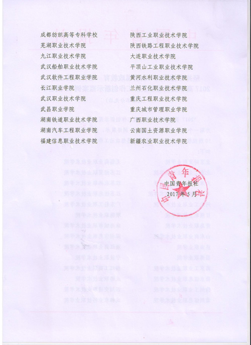 “2017高职院校思想政治工作创新示范案例”征集活动,经过为期一个多月的学校自主报名、网络展示、专家委员会推荐,最终50所院校获选“2017高职院校思想政治工作创新示范案例”,名单如下: