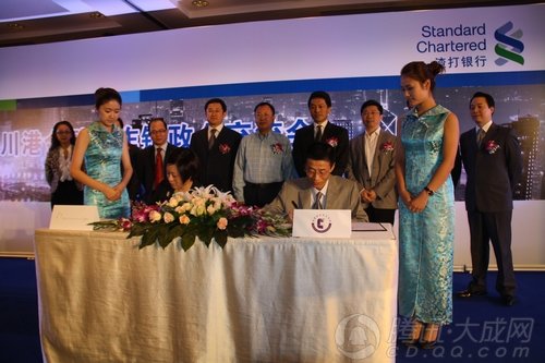 为加强四川企业与金融资源的对接力度和拓宽融资渠道,推进川企赴港上市和境外发债、人民币跨境贸易结算等金融合作,促进四川社会经济发展,川港金融合作银政企交流会于2011年9月23日在成都举行。省政府副秘书长李家国和渣打银行(中国)有限公司首席执行总裁兼董事会常务副主席林清德出席会议并致辞。