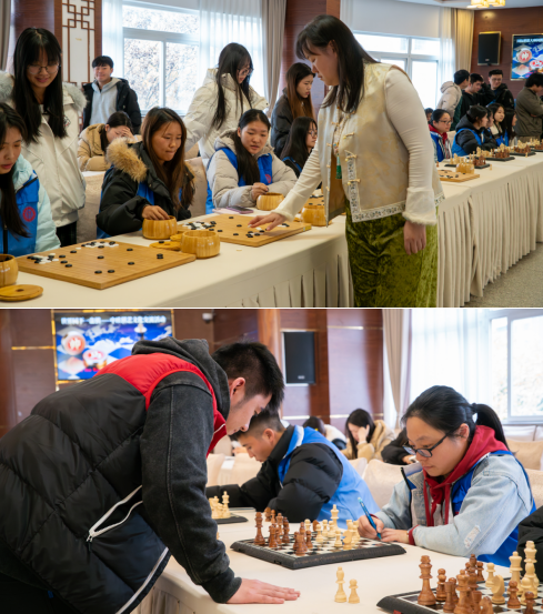 与此同时,围棋职业初段王榛老师也进行了1对5的车轮表演赛,象棋、国际象棋、围棋三项棋类学子同场交流,呈现出“三棋共展、中西交融”的生动场景。活动现场既有紧张的比赛气氛,也不乏轻松愉快的交流互动,学子们在实践中感受棋艺魅力,拓宽国际视野。
