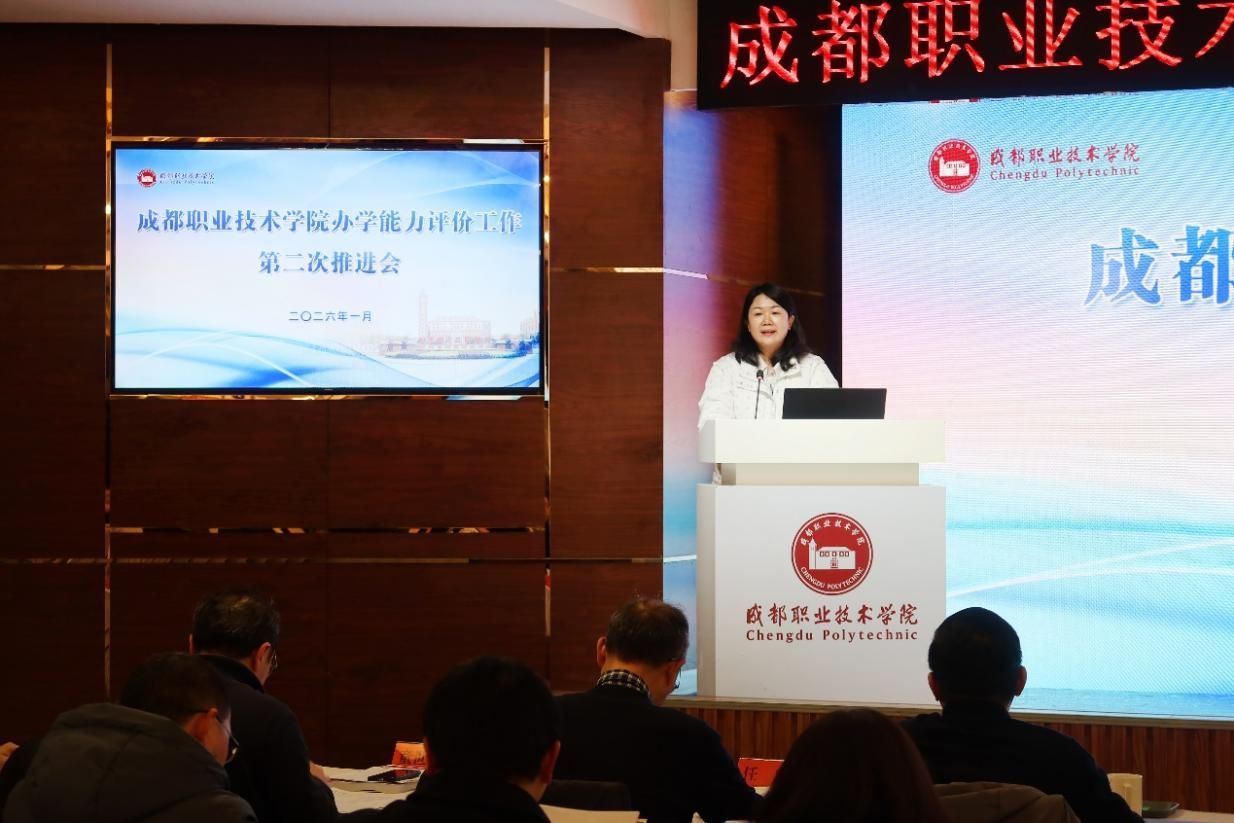 王运芳结合四川省高等职业学校办学能力评价工作部署和我校发展实际,对学校提出三点要求,一是凝聚全校共识,准确把握评价工作核心要义,形成迎评工作合力;二是坚持问题导向,建立问题清单、责任清单、整改清单推动整改闭环落实;三是强化成果运用,将评价与学校重点工作深度融合,切实转化为办学质量提升实效。王运芳期待我校发挥示范带头作用,力争成为全省首个完成办学能力评价的高职院校,为全省87所高职院校的评估工作积累可复制、可推广的经验。会上,教务处评估办从“前期工作概况”“自评自建情况”“下一阶段工作安排”三个方面汇报了学校办学能力评价工作推进情况。教务处、发展规划处,党委教师工作部(人事处)党委宣传部、花源校区管理处、医护学院和工程建设专业代表依序发言,汇报了本单位评建工作开展情况、取得的主要成效、目前存在的问题及下一步安排部署。