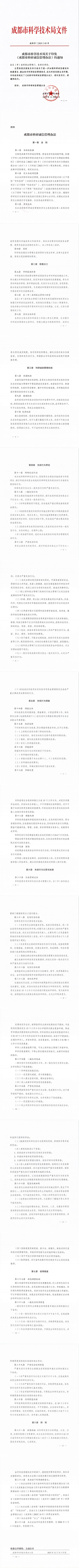成都市科学技术局关于印发《成都市科研诚信管理办法》的通知