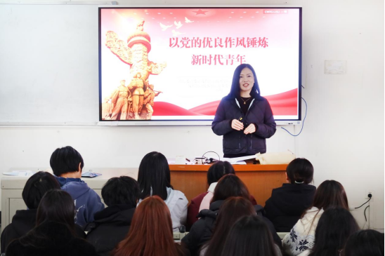 派驻纪检监察组组长、党委委员、纪委书记田梅讲授“以党的优良作风锤炼新时代青年”,回顾了党的作风建设历程,深刻阐述了党的优良作风的丰富内涵和时代价值。她结合青年学生成长实际,强调要传承红色基因,涵养清风正气,在学习和生活中培养艰苦奋斗、勤俭节约的优良品质,筑牢拒腐防变的思想根基。