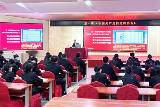 党委专职副书记文绍春以“中国共产党的光辉历程”为主题,运用丰富史料和生动案例,系统回顾党的百年奋斗重大成就和历史经验,展现了党领导下的中国发生的深刻变革,引导学生深刻认识坚持党的领导的历史必然性与现实重要性,不断增强对党的政治认同、思想认同、理论认同与情感认同。
