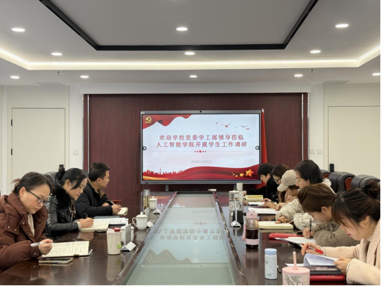 2025年12月31日,学校党委学工部一行到访人工智能学院,开展学生工作调研,会议由人工智能学院党总支副书记李慧超主持。本次会议旨在深入了解学院辅导员工作开展情况,并收集对学生工作的意见与建议,进一步推动学生工作高质量发展。