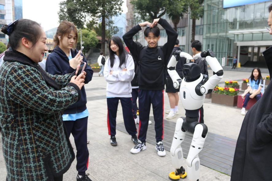 作为首轮软件技术专业群、新一轮人工智能技术应用专业群“双高计划”重点建设院校,我校人工智能学院深耕人工智能领域教学与科普,此次科普夏令营以沉浸式体验、专业化讲解为核心,为泰国师生打造了丰富的科技体验内容。上午9时30分,交流活动在充满科技感的氛围中拉开帷幕,人工智能学院师生携手校企合作企业,现场展示两款先进人形机器人与一款机器狗。灵动的动作演示、趣味的智能交互,让机器人、机器狗与中泰学子亲密互动,阵阵赞叹与欢笑让跨文化的距离瞬间消融,也让泰国师生直观感受具身智能技术的前沿魅力。
