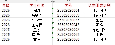 根据《成都职业技术学院关于做好2026年春季家庭经济困难学生动态调整工作的通知》,由学生本人提交申请,班级评议小组民主评议,分院评审工作复审,拟对7位同学家庭经济困难认定结果进行公示。