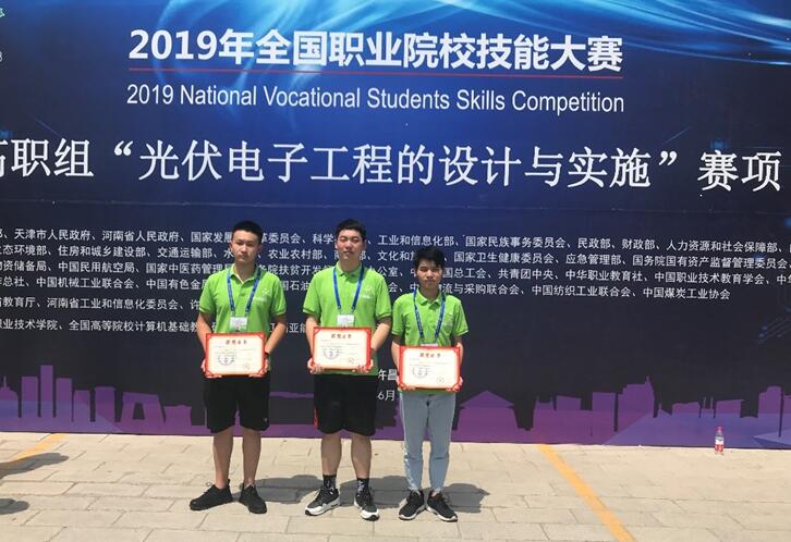 6月3日,2019年全国职业院校技能大赛高职组“光伏电子工程的设计与实施”赛项在许昌职业技术学院举行,来自全国24个省份83支参赛队以及来自“一带一路”沿线国家的2个国际队共计264名选手参赛。我院软件分院钟子龙、彭先龙、李陈3名同学在指导教师孟奕峰、梁桃华的精心指导下,认真准备,沉着应战,经过激烈角逐,最终荣获大赛团体三等奖。
