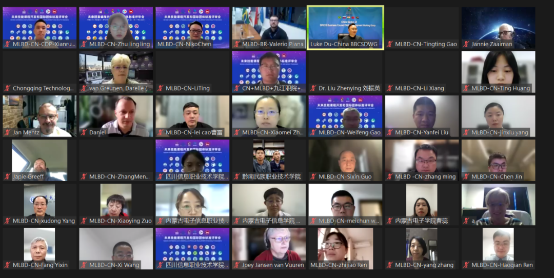 l2022年12月11日,金砖国家“机器学习与大数据”未来技能课程开发和国际团体标准国内评审会隆重举行。金砖国家工商理事会(中方)技能发展工作组主席、一带一路暨金砖国家技能发展国际联盟理事长、金砖国家技能发展与技术创新大赛组委会执委会主席、厦门市金砖未来技能发展与技术创新研究院院长刘振英1博士,金砖国家工商理事会(中方)技能发展工作组外方专家联络人杜红杰, 重庆翰海睿智大数据科技股份有限公司总裁陈继2、以及重庆工商职业学院、成都职业技术学院、深圳职业技术学院、武汉职业技术学院、济南工程职业技术学院、南宁职业技术学院、四川信息职业技术学院、天津电子信息技术职业学院、泸州职业技术学院、石河子工程职业技术学院等来自全国各地30多所共计90多名参与金砖国家“机器学习与大数据”未来技能课程开发和国际团体标准起草工作的院校专家代表通过腾讯会议参加了会议。