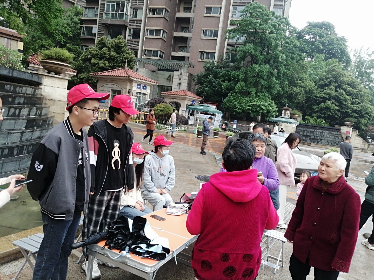 此次活动共有9人参与,上午8点40到达目的地,开始准备工作,与社区管理人员进行协商、搭桌子等,每个人都积极参与,展现了团队协作能力。上午8点55,同学们进入社区进行宣传。