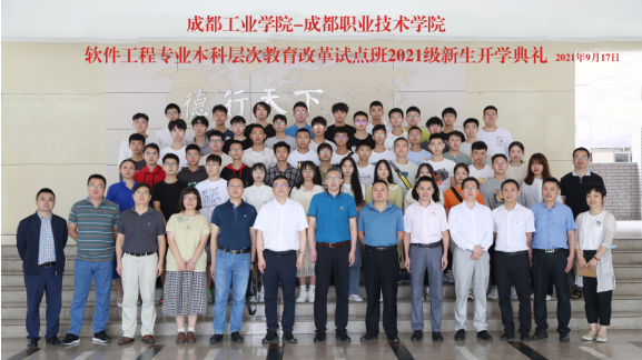 9月17日,成都工业学院•成都职业技术学院2021级软件工程专业本科层次职业教育改革试点班新生开学典礼在我院举行。成都工业学院教务处副处长胡晓明、计算机工程学院副院长向勇,成都职业技术学院软件学院院长涂智、教务处副处长刘明勇、软件学院副院长简显锐参加开学典礼。仪式由成都职业技术学院软件学院党总支副书记刘喜主持。
