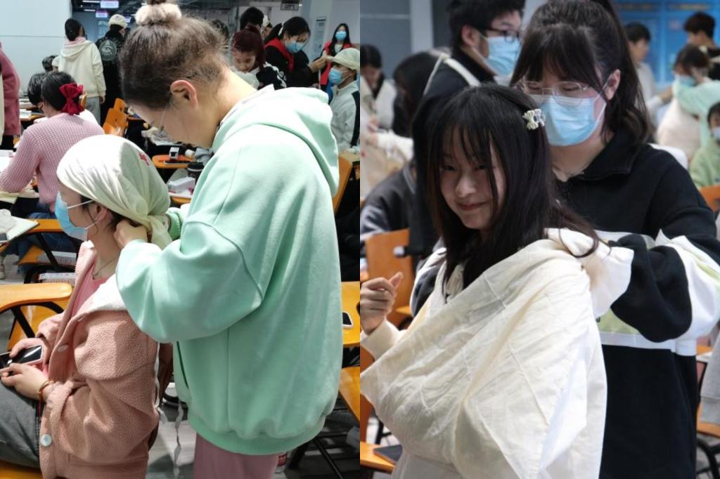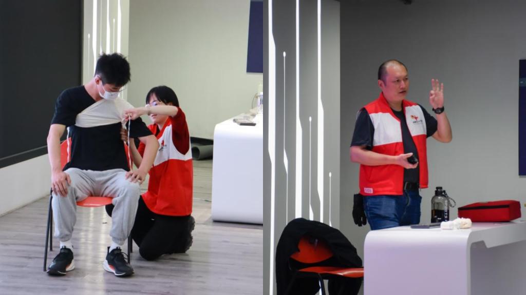 在培训过程中,成都市红十字会的崔老师和秦老师运用大量案例做为支撑,从实践中讲述技巧,让同学们在运用技能方面形成肌肉记忆。同时采用模拟事发现场的互动方式向同学们介绍了紧急救护技巧,以及心肺复苏和AED的操作使用。