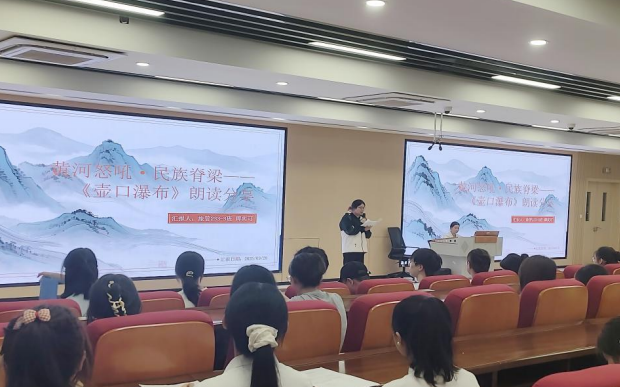 旅管 233-3 班卿奕可同学带来《壶口瀑布》朗诵。她以文字为媒,带领师生置身黄河之畔,壶口瀑布的磅礴气势跃然眼前,让大家心潮澎湃。在领略自然奇观的同时,师生们也深刻感悟到中华民族坚韧不拔、勇往直前的精神内核。