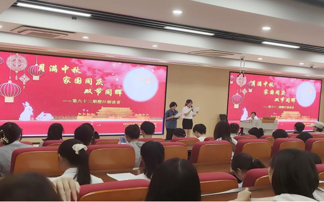 当桂花的馥郁芬芳悄然漫过街巷,当五星红旗迎着晨光舒展耀眼的红,中秋的皎洁月色与国庆的热烈欢庆浪漫相拥。在这满载团圆与荣光的特殊时节,以“月满中秋·家国同庆——双节同辉”为主题的第六十三期“橙汁朗读者”活动如约而至。我们以朗读为桥,连接“小家”与“大国”,让明月见证人间温情,让声音传递时代敬意,在文字的韵律与情感的共鸣中,定格中秋的圆满时刻,礼赞祖国的盛世华章。本次活动特邀图书馆杨老师、龚老师莅临指导,图协各部门成员齐聚一堂,共同参与这场声音盛宴。