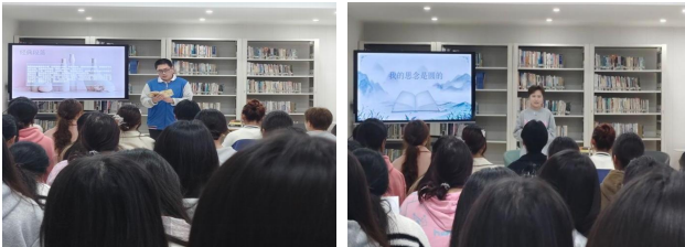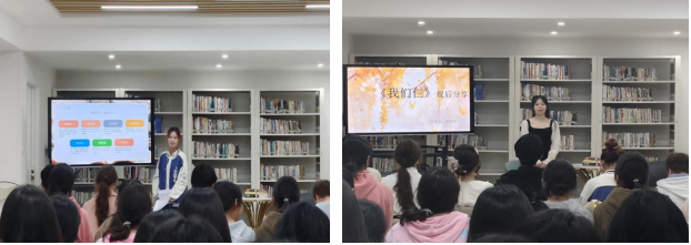 供应链 253-2 班邓婉如同学带来《我们仨》的分享,她以平缓却深情的语调,讲述了杨绛先生一家三口相守相伴,最终却因离别渐行渐远的故事。简单的叙事中,既有对家人的深切眷恋,也蕴含着对生命、离别与亲情的深刻体悟,让大家读懂了“平凡日常里的深情”。老服 243-1 班袁孟秋同学分享《饮九月初九的酒》,“重阳清酒、一轮弯月”的意象,将游子的思乡之情表达得淋漓尽致;老服 243-1 班的毕君瑶同学则带来《梁晓声说亲情》,通过对书中片段的解读,将母爱的伟大与无私完美诠释,让现场不少师生湿了眼眶。