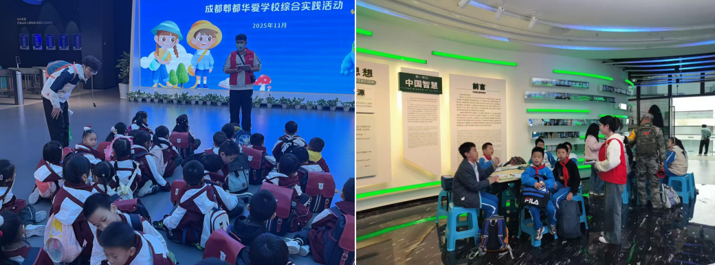 2025年11月4日至6日,文化旅游学院旅游管理专业组织19名学生,前往成都生态文明建设主题公园,开展为期三天的研学生产性实训。同学们以“研学导师”身份,为泡桐树小学、华爱小学共700余名学生提供专业研学服务,在真实岗位中锻炼并提升了专业核心能力。