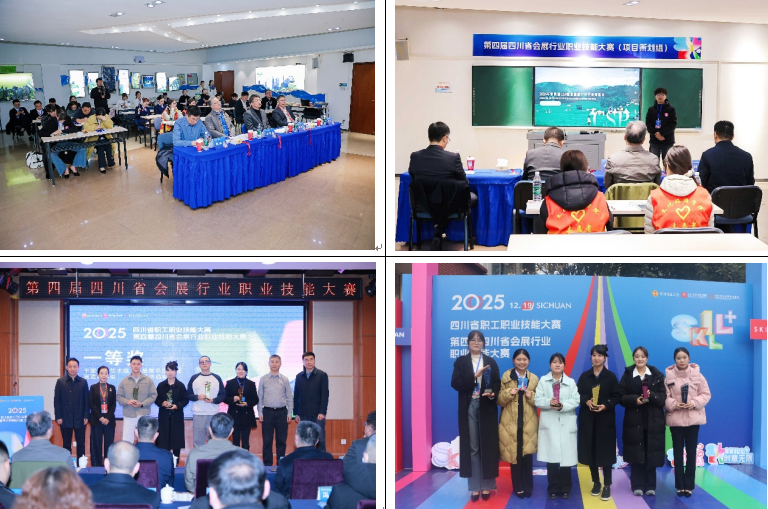 2025年12月19日,第四届会展行业职业技能大赛决赛暨颁奖仪式在我校花源校区顺利举行。大赛由四川省总工会、四川国际博览集团、四川省会议展览协会联合主办,成都职业技术学院协办。四川省总工会、商务厅、国资委等单位相关领导、学校副校长王小军出席活动,中国会展经济研究会、国际展览与项目协会(IAEE)中国理事会、重庆市会展行业协会、澳门南光国际会议展览有限公司等机构与企业代表参会。四川国际博览集团有限公司党委副书记任强致辞,副总经理吴华平主持颁奖仪式。