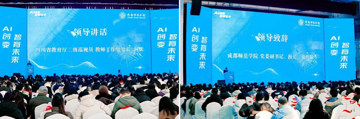 2025年12月25日,由四川省教育厅指导、成都师范学院主办的“首届教师人工智能创新应用能力大赛成果交流暨教师数字素养提升论坛”顺利举行。论坛以“人工智能助力教师队伍建设”为主题,设立主论坛及高等教育、职业教育、基础教育、师范生教育四个分论坛,吸引了全省教育行政部门负责人、高校专家学者及获奖教师代表齐聚一堂,共同交流人工智能与教育融合的创新实践与前沿思考。