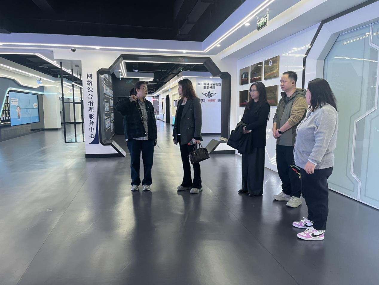 在芯媒荟负责人带领下,文旅学院一行首站参观了高新区网络综合治理服务中心。了解互联网综合治理的前沿技术手段与服务模式。