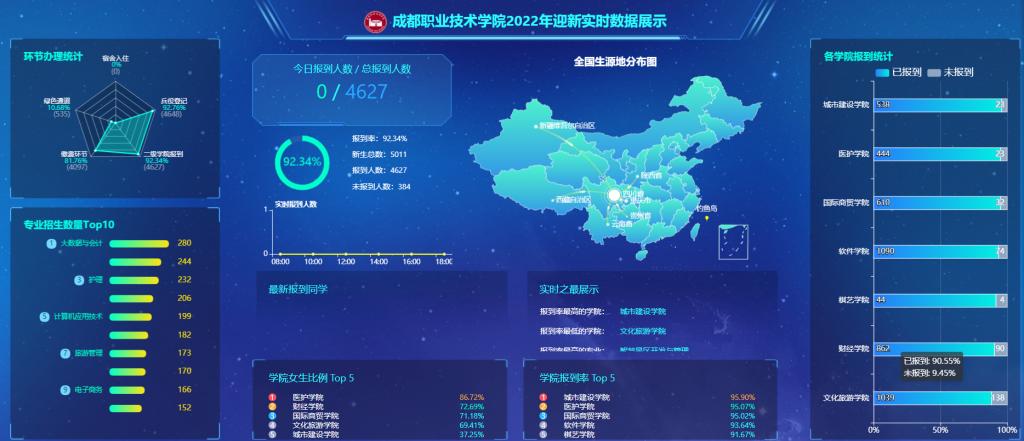 截止9月15日,学校2022年秋季共计完成新生网上报到注册4627人,目前各二级学院正按照学校安排组织新生开展全方位的入学教育,切实帮助新生更好、更快地适应大学生活。