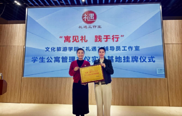文化旅游学院学工办主任赵琪老师以“以礼立威、以情暖心”为题,结合宿舍管理案例与操作示范,系统讲解了生活老师的形象礼仪、沟通礼仪,深入传递“管理有温度、服务有力度”的工作理念,推动宿管工作从“管宿舍的人”向“学生的守护者”转变。培训最后,赵琪老师代表“礼遇”辅导员工作室,为学生公寓授予礼仪实践基地牌匾,标志着公寓管理与服务在礼仪文化建设方面迈出新的步伐。