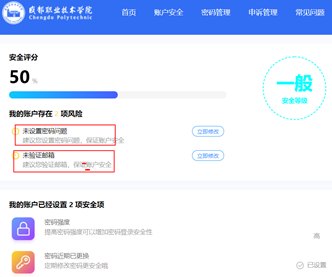 可通过【忘记密码】进入【安全管理中心】,登录安全管理中心后设置密保问题、安全邮箱、修改密码、绑定和解绑微信、手机等功能,以便后期方便自助重置密码。
