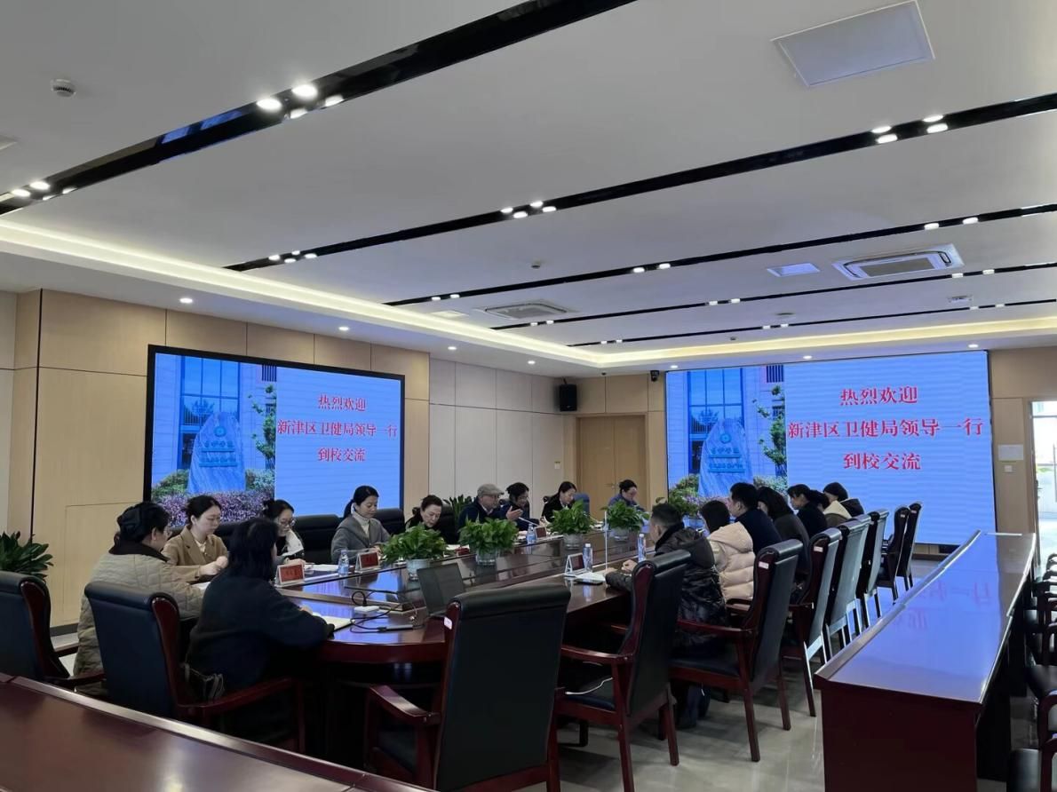 2025年12月5日下午,新津区卫生健康局机关党委书记谢承序率队到校开展交流座谈。新津区人民医院、中医医院、妇幼保健院相关负责人及成都职业技术学院医护学院党总支书记徐国栋、副院长左莉、缪礼红,周琦教授等参加座谈。