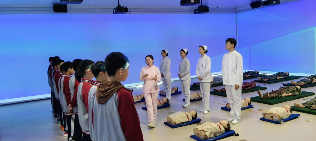 2026年4月15日下午,成都职业技术学院智慧康养实训中心迎来新津区花源初中50余名师生,开展 “医路启航:生命探索与急救技能实践营” 主题科普研学活动。本次活动依托实训中心一楼专业场馆资源,以 “提升青少年健康素养、增强急救实践能力、激发医学职业认知”为宗旨,通过理论与实践深度融合的课程设计,为初中生带来了一堂别开生面的医学健康实践课。