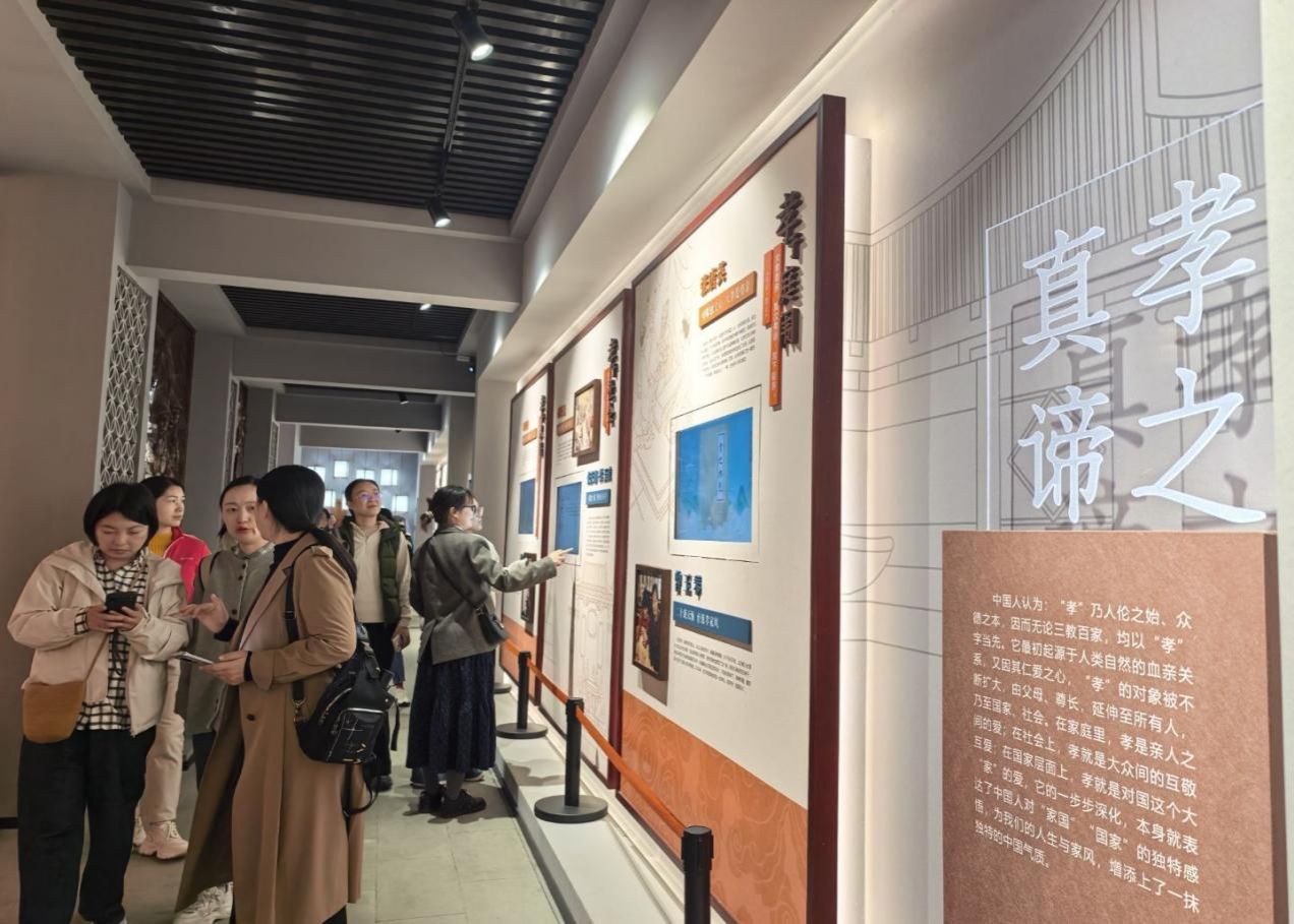忠、孝、廉、节,中华优秀传统文化的精华所在,早在先秦时期,就已有诸子百家对其加以阐发,及至南宋,“忠孝廉节”己成固定词汇,代表着中国人日用而不觉的价值观。依托纯阳观忠孝文化,新津区深度挖掘其中的廉洁、廉政内涵,以忠孝促廉洁,以廉洁行忠孝,借用优秀传统文化推动新时代廉洁文化建设,建成了具有历史内涵、时代特征、新津特色的成都中华忠孝文化主题公园。按“明忠孝,知廉节”“品忠孝,悟廉节”分为忠孝文化馆、忠孝古韵园两大板块,致力于以忠孝廉节的“观、思、悟、践”,给人以涧物无声的精神滋养,在传承民族文化根脉、厚植清廉蓉城社会土壤、培育社会主义核心价值观等多个方面具有重要的意义。老师们感受着道教 “清静养神”“顺应自然” 的养生理念,深刻体会到道教文化与医护 “救死扶伤” 职业初心的精神共鸣,不少老师用镜头记录下这份跨越时空的文化联结。