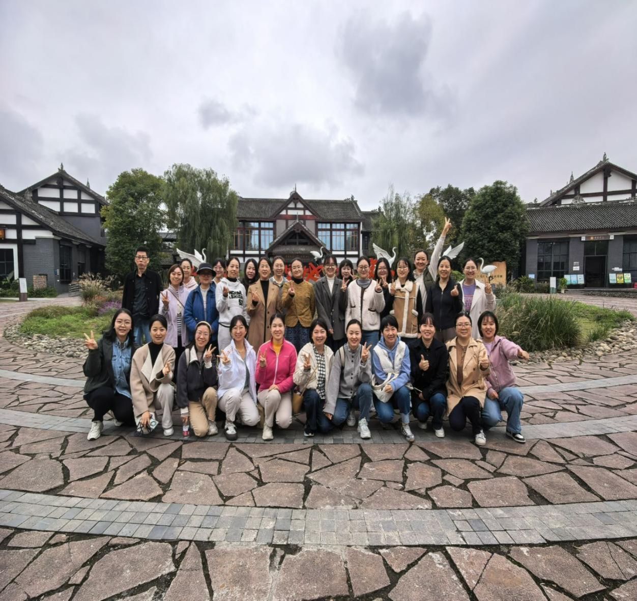 金秋时节,在新津白鹤滩国家级湿地公园漫步一圈,眼前的一切仍然生机勃勃。开阔的大草地、亲水的芦苇草、绵延弯曲的石板路、风中摇曳的时花,尽显 “江天一体、人融自然” 的生态之美。湿润的空气裹着草木的清新与江水的微凉扑面而来,每一步都格外舒爽。随心漫步都是美景,随手一拍都是大片。老师们感受着阴天里湿地独有的静谧与灵动,纷纷表示,这样贴着 “湿地本色” 的赏景体验,让人真正贴近了自然,也收获了最简单的秋日快乐。