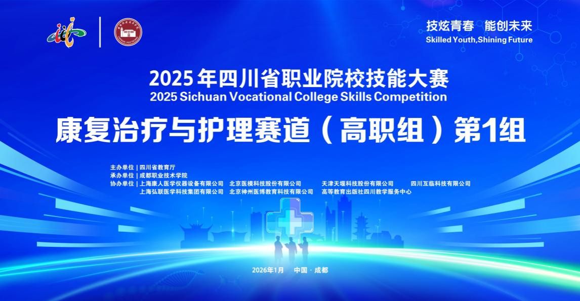 2026年1月9日至12日,由四川省教育厅主办、成都职业技术学院承办的2025年四川省职业院校技能大赛康复治疗与护理赛道(高职组)第一组比赛,在我校花源校区智慧康养实训中心顺利举行。